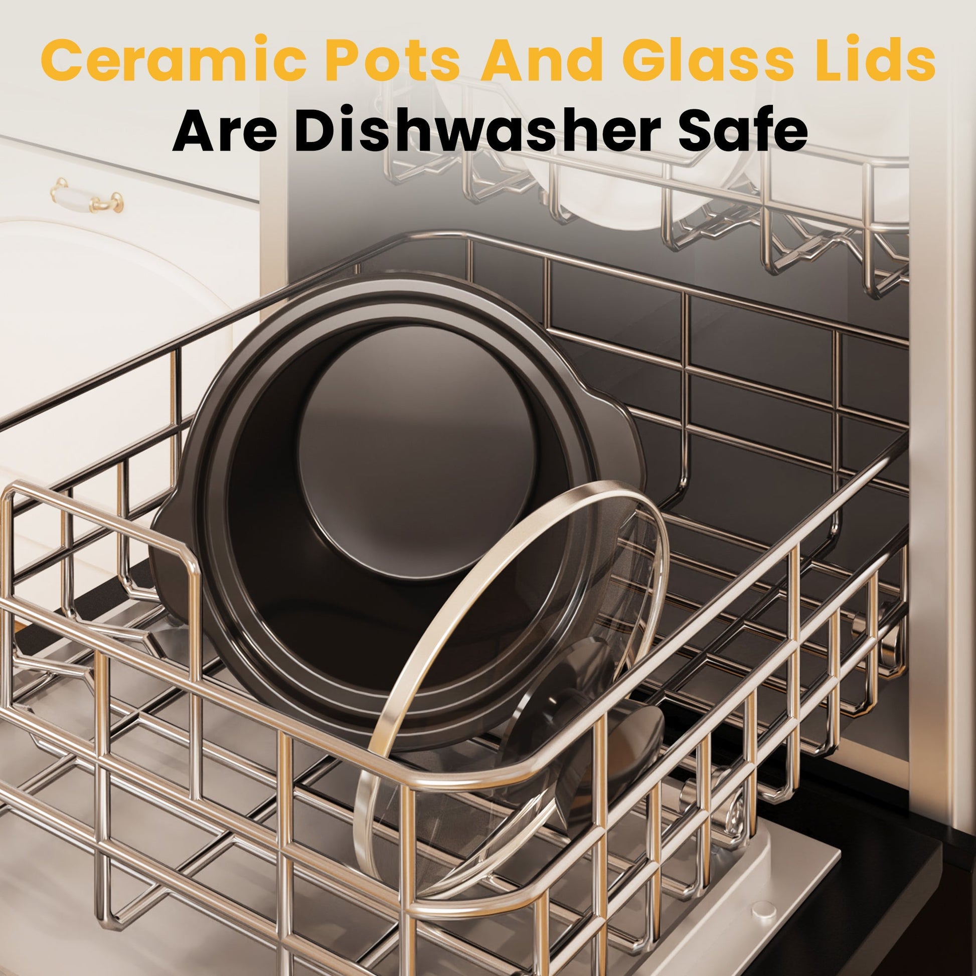 Sunvivi Dual Slow Cooker, Buffet Server and Warmer with 2 Removable Ceramic Pots, Slow Cooker Food Warmer with 3 Adjustable Temp & 2 Visible Glass Lids, Stainless Steel, Total 2.5 QT