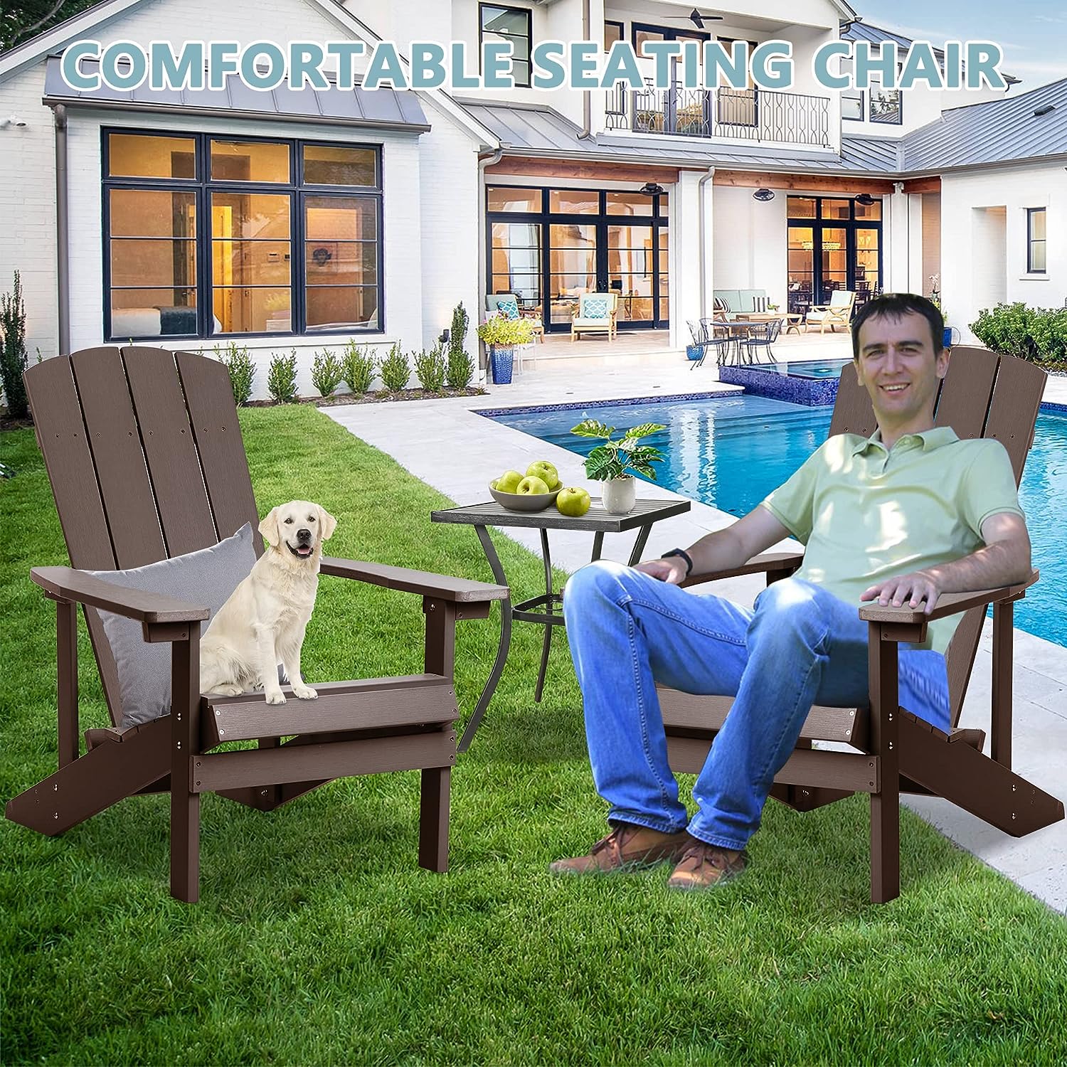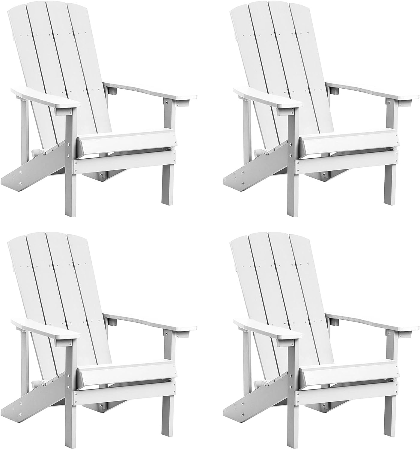 【Comfortable Seating Chair】The adirondack chair size is 35.4”L * 29.5”W * 36.6”H, chair width 19.7”, armrests width 4.9”. It’s wide enough to seat, place cups and plates. The load capacity of these tall large plastic fire pit chairs is 350lbs. And the reclining outdoor adirondack chair is ergonomic to release spinal pressure and fatigue effectively.