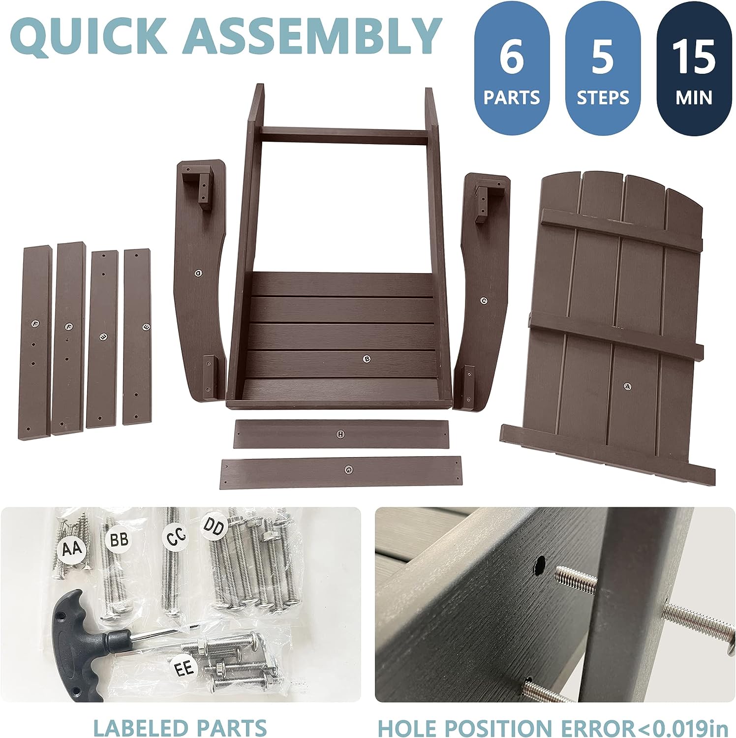 【Easy to Clean and Quick Assembly】The adirondack chair surface is smooth and easy to clean. With the detailed product instruction and labeled parts, you can easily assemble the tall chair in 15 minutes, quickly get a complete and beautiful outdoor plastic adirondack chair set of 2.