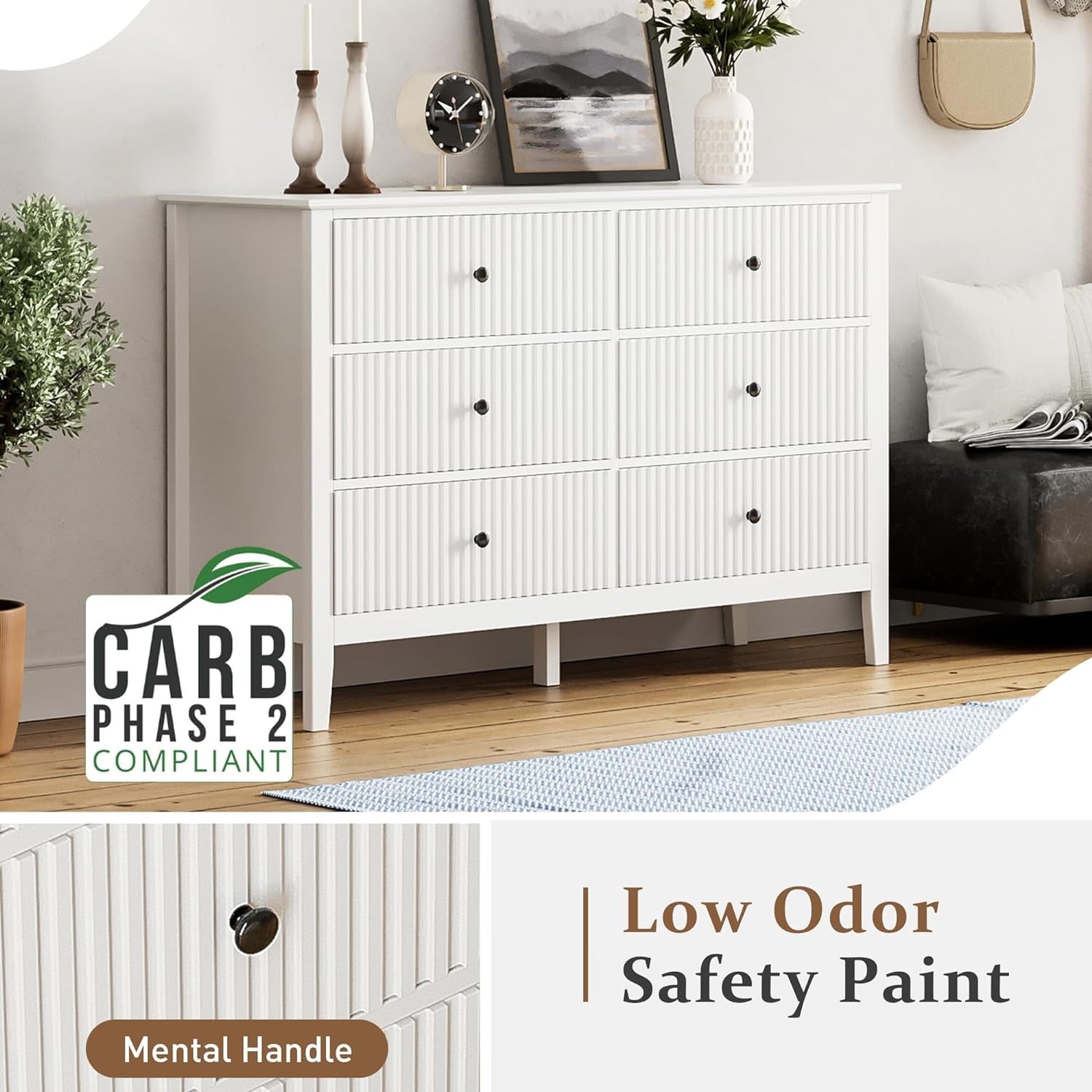 White 6 Drawer Dresser 47" Wide, Modern Wood Chest of Drawers, Double Silent Slide Drawers Storage Organizer Cabinet for Bedroom, Nursery, Living Room, Hallway