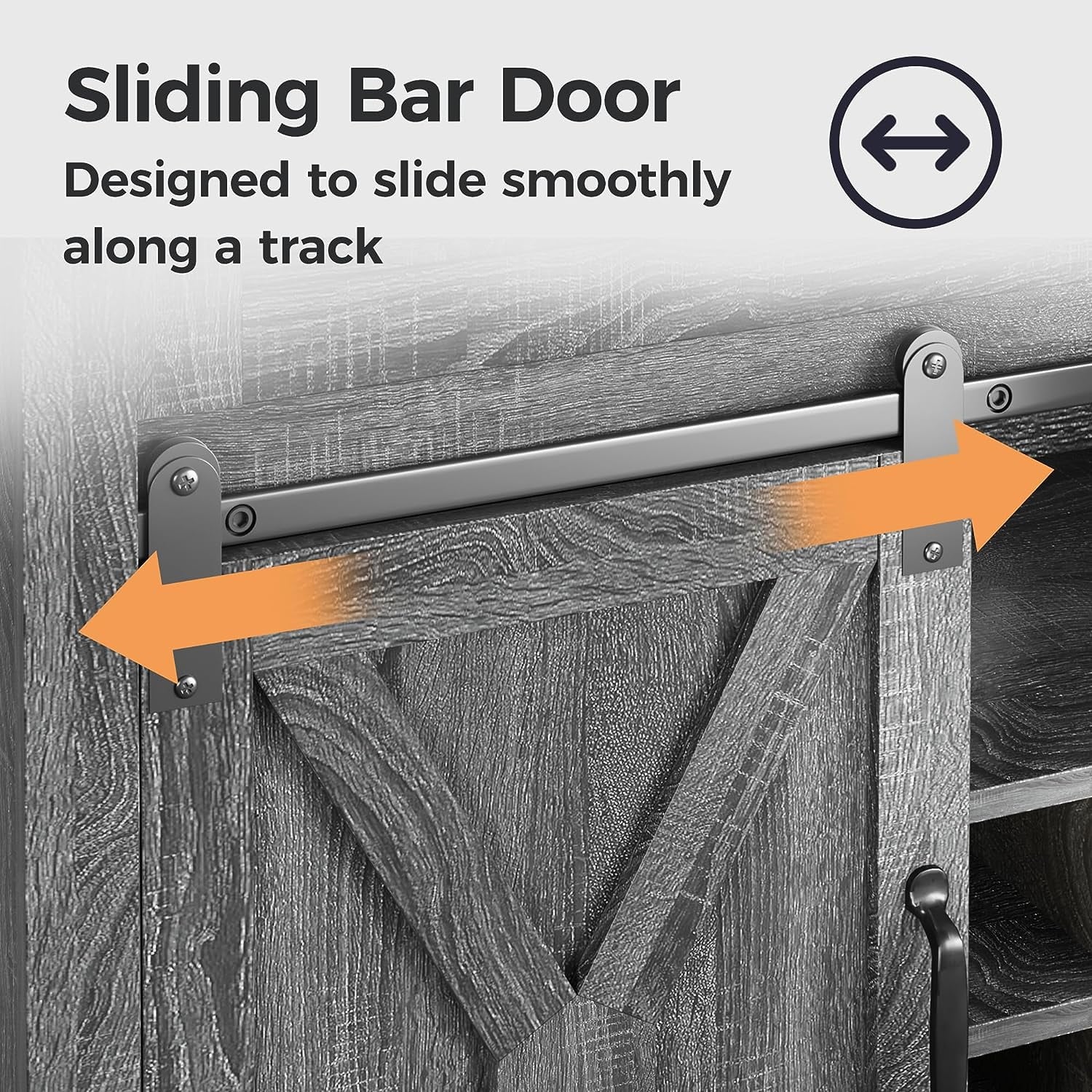 - ??Farmhouse Barn Door Style??The barn sliding door features smooth rails and vintage handles, infusing your home with rustic charm. With a wood grain finish and X-shaped design, the bar buffet cabinet exudes a versatile minimalist style.