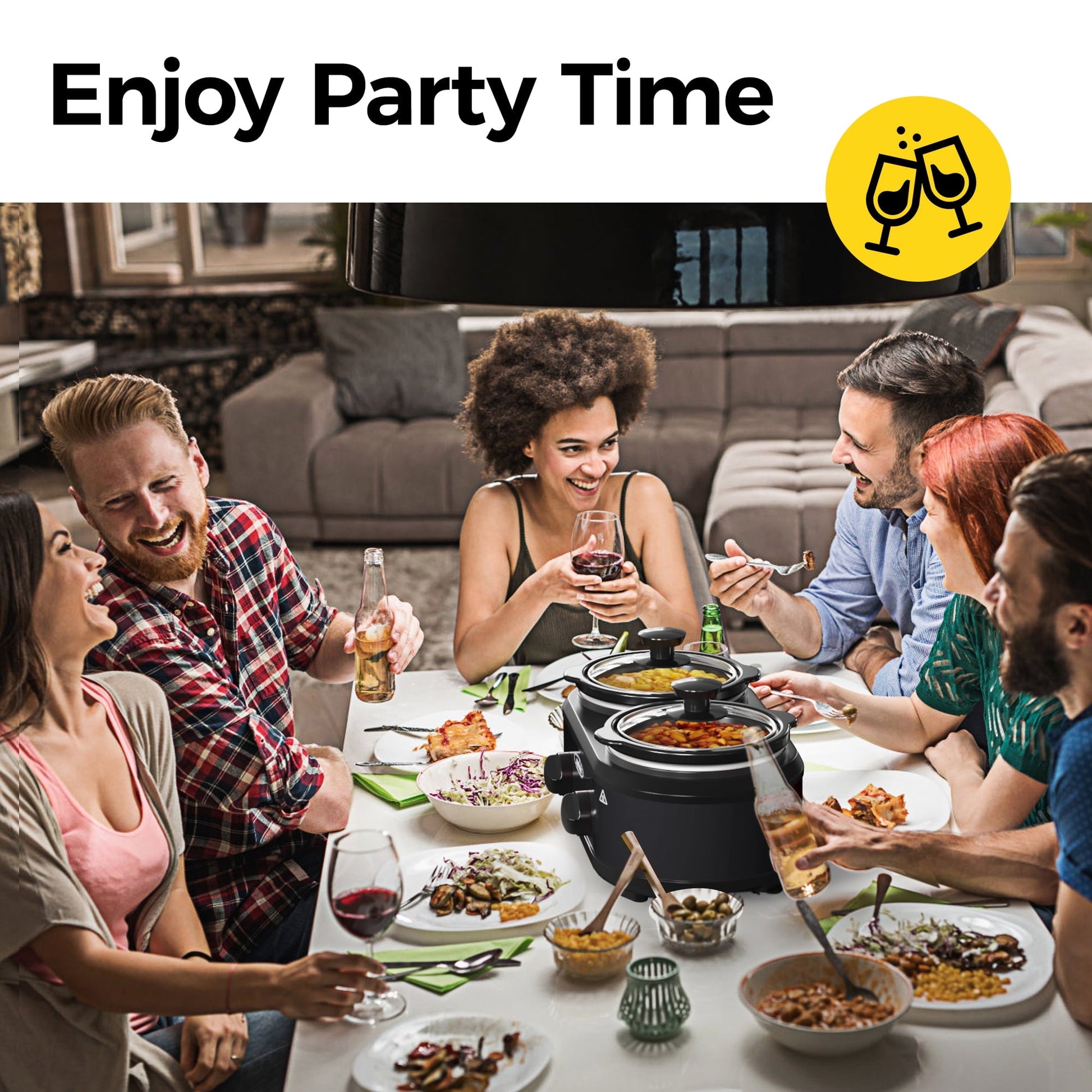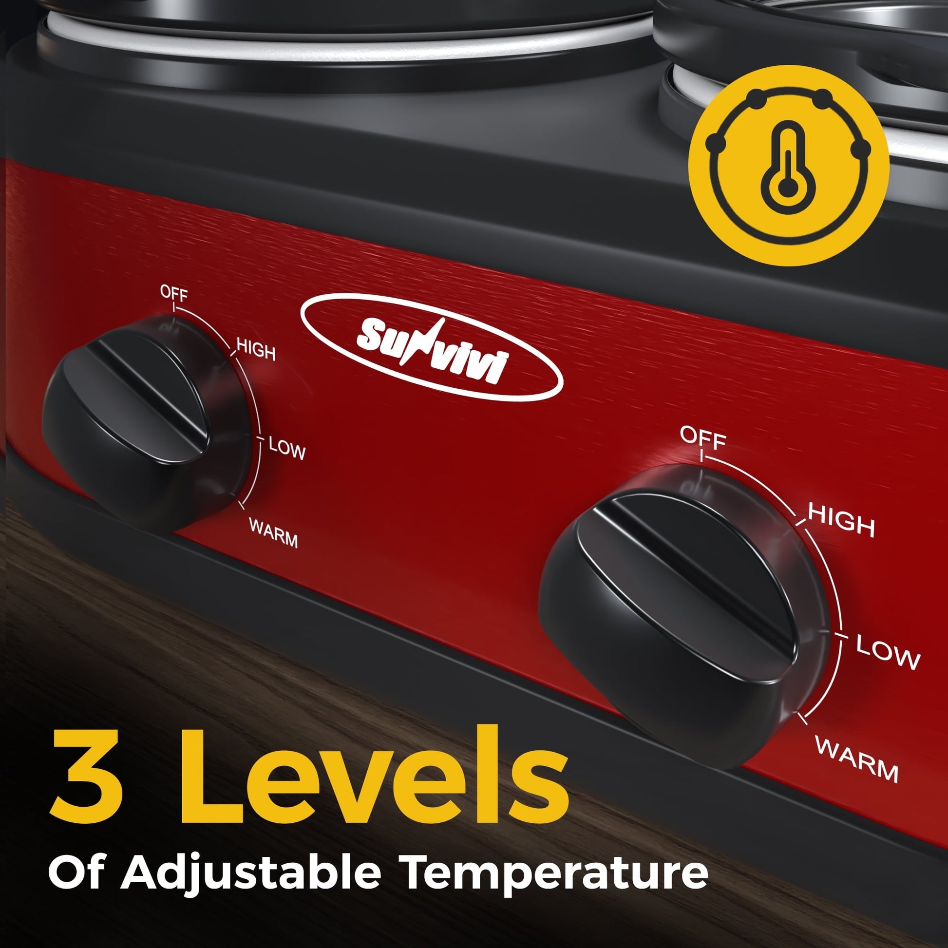 SUNVIVI Dual Pot Slow Cooker, 2 Pot Small Mini Crock Buffet Server and Warmer with Ceramic Pot, Adjustable Temp