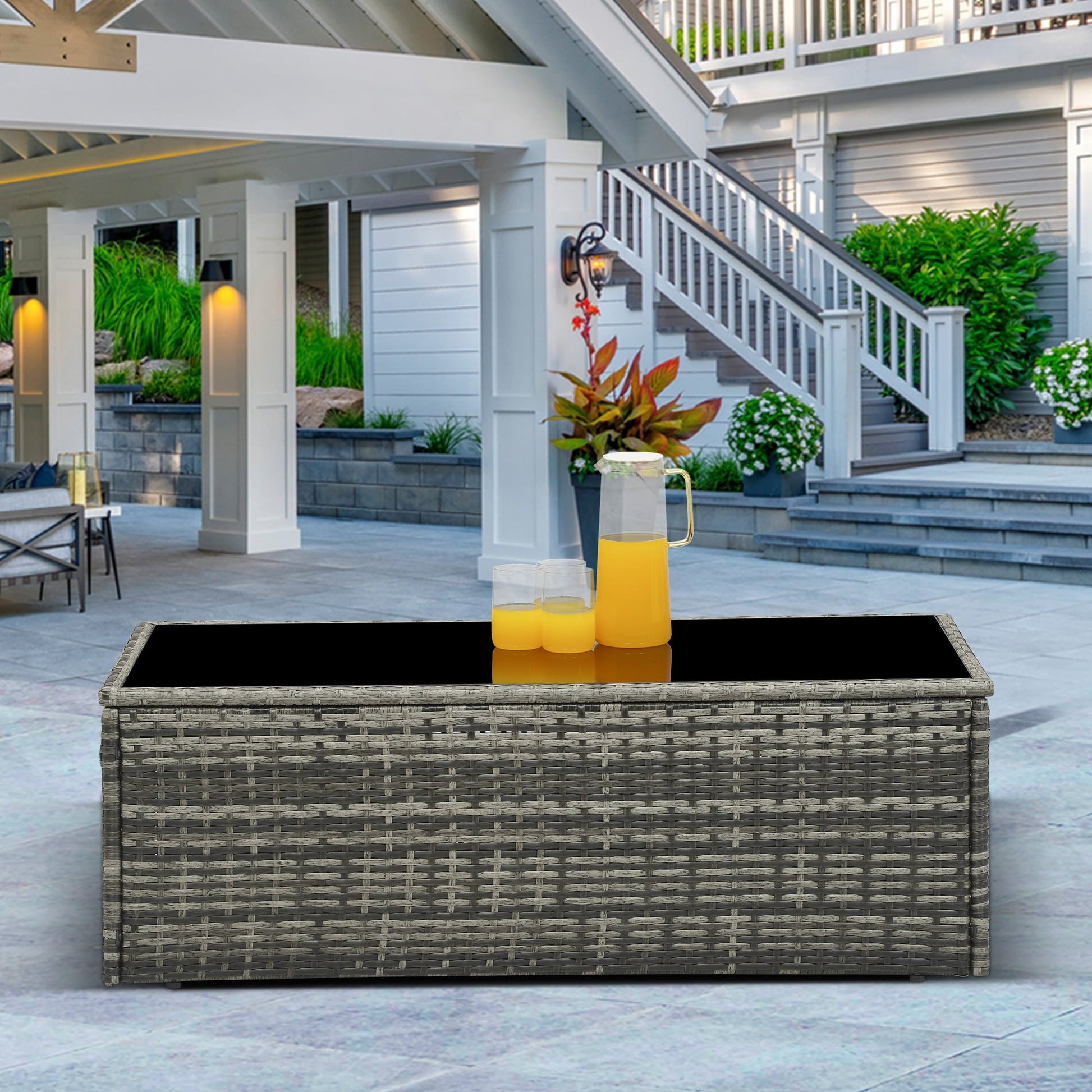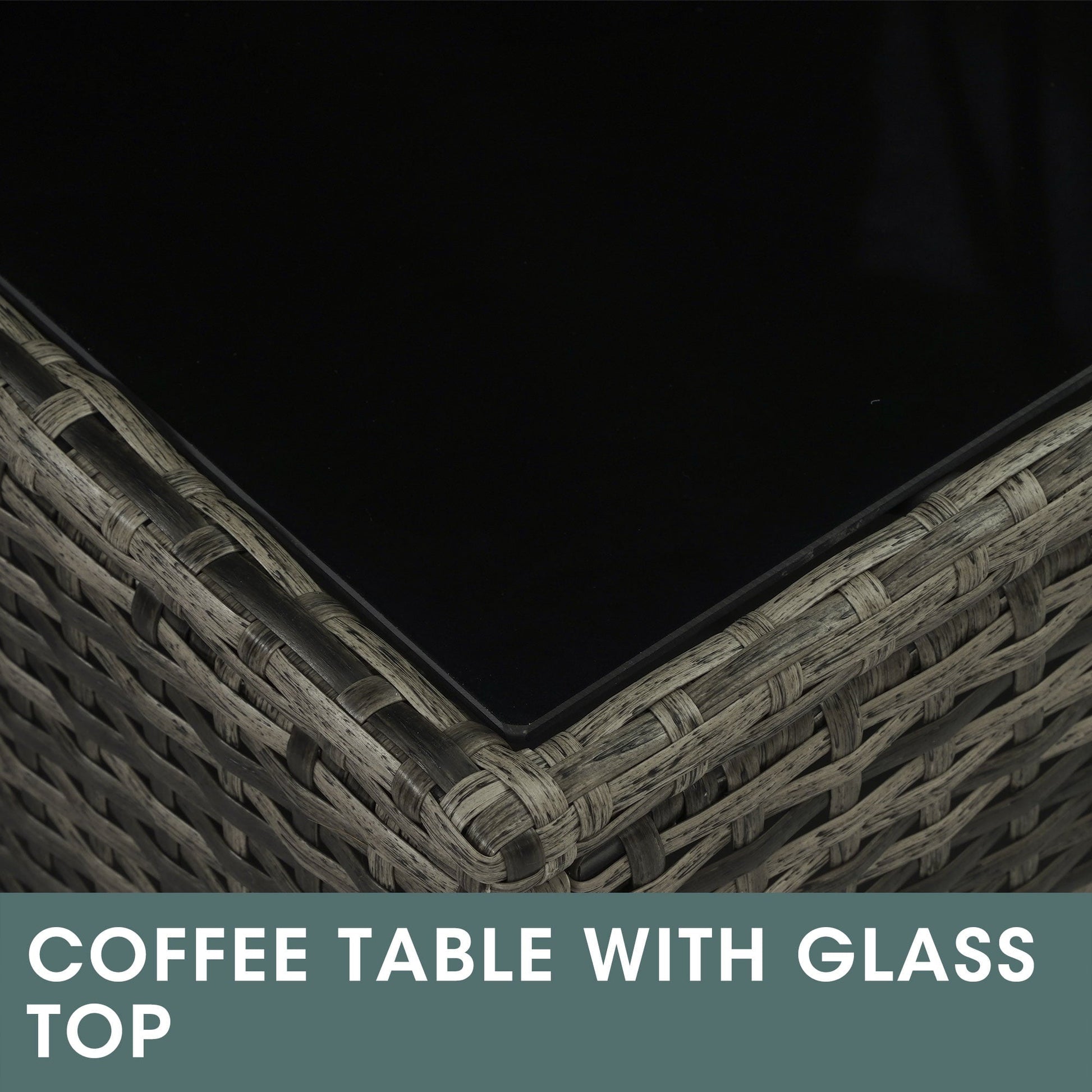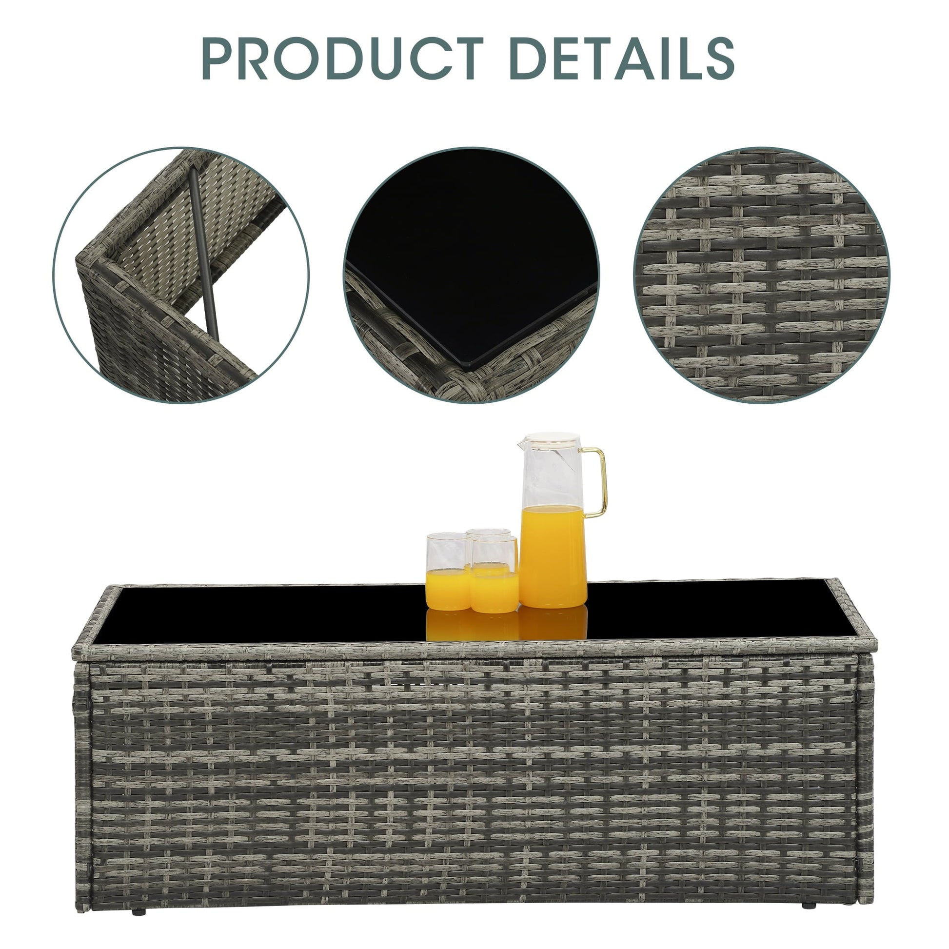 sunvivicollection Outdoor Coffee Table, Grey Wicker Table for Patio Sectional Furniture, All-Weather Aluminum Frame Rectangular Coffee Table with Glass Top