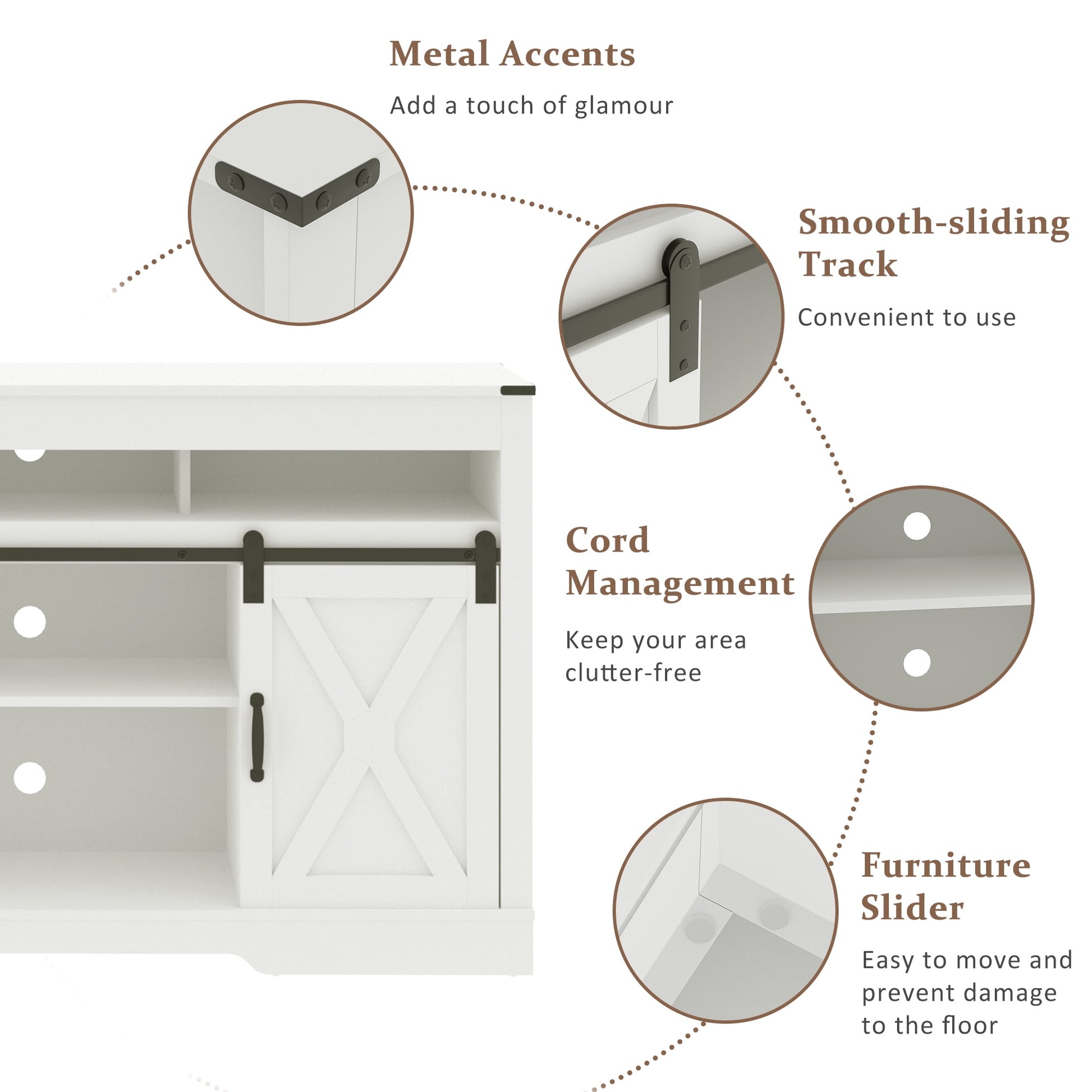Superjoe Farmhouse Sliding Barn Door TV Stand for TVs up to 70", Modern Wood Tall Entertainment Center Media Console Storage Cabinet for Living Room Bedroom, White